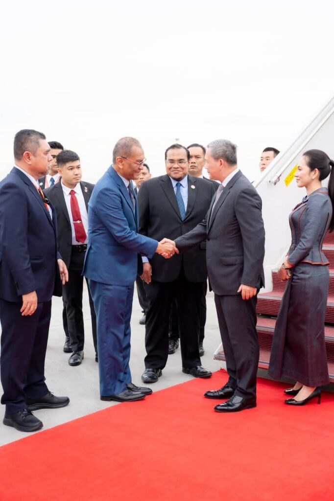 យោងតាមក្រសួងការបរទេសកម្ពុជា បានឱ្យដឹងថា អញ្ជើញអមដំណើរសម្ដេចមហា បវរ ធិបតី និងលោកជំទាវបណ្ឌិត ពេជ ចន្ទមុន្នី ហ៊ុនម៉ាណែត រួមមានលោកប្រាក់ សុខុន ឧបនាយករដ្ឋមន្ត្រី និងជារដ្ឋមន្ត្រីការបរទេស និងសហប្រតិបត្តិការអន្តរជាតិ រួមជាមួយឧបនាយករដ្ឋមន្តី ទេសរដ្ឋមន្ត្រី រដ្ឋមន្ត្រី និងមន្ត្រីជាន់ខ្ពស់រដ្ឋាភិបាល ព្រម ទាំង តំណាងធុរកិច្ច មកពីសភាពាណិជ្ជកម្មកម្ពុជា និងសមាគមឧកញ៉ាកម្ពុជាផងដែរ។
